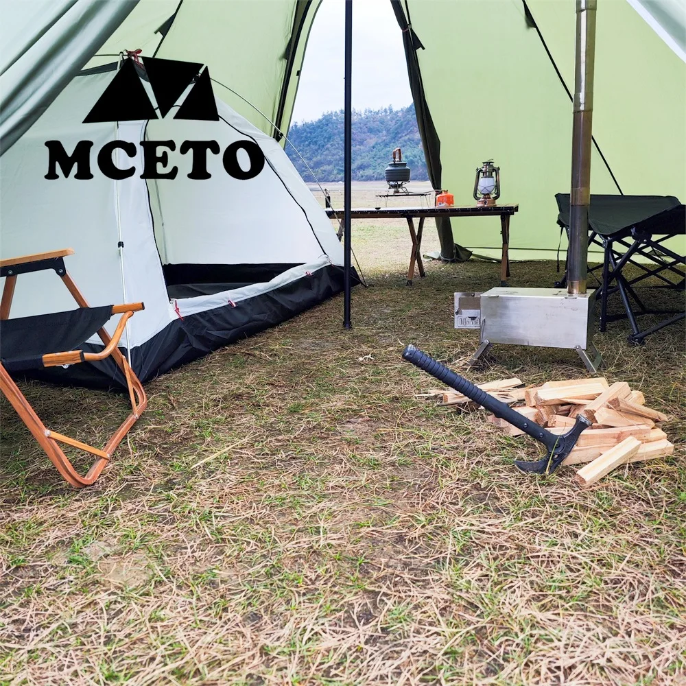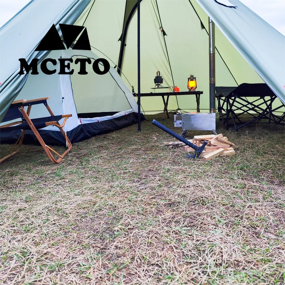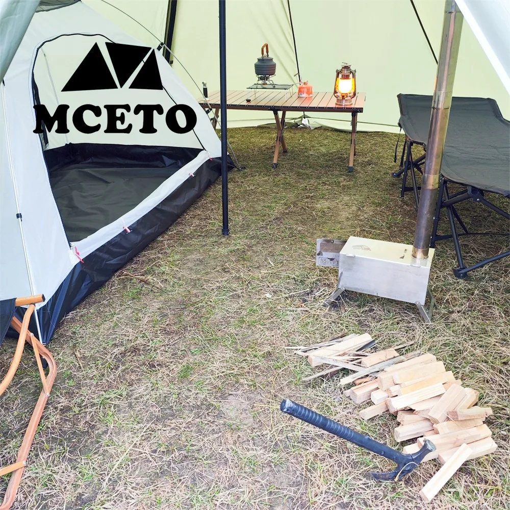 If you need to use a stove with a chimney in the tent, the chimney opening should be used with fireproof cloth to avoid burning the tent.