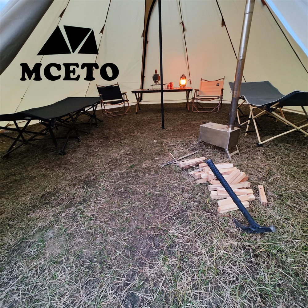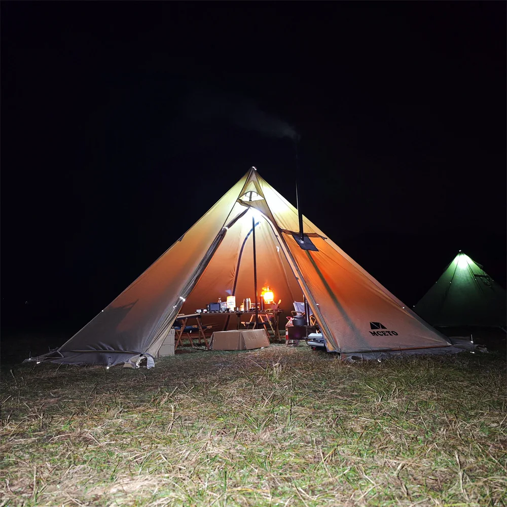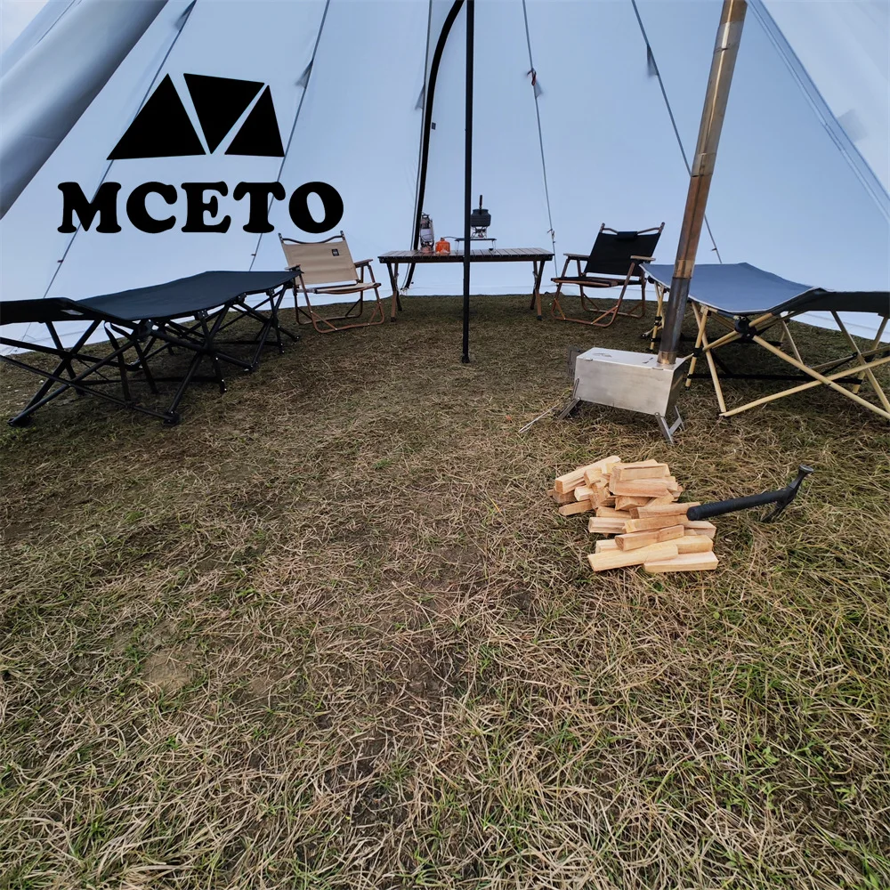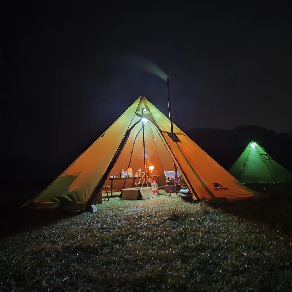 If you need to use a stove with a chimney in the tent, the chimney opening should be used with fireproof cloth to avoid burning the tent.