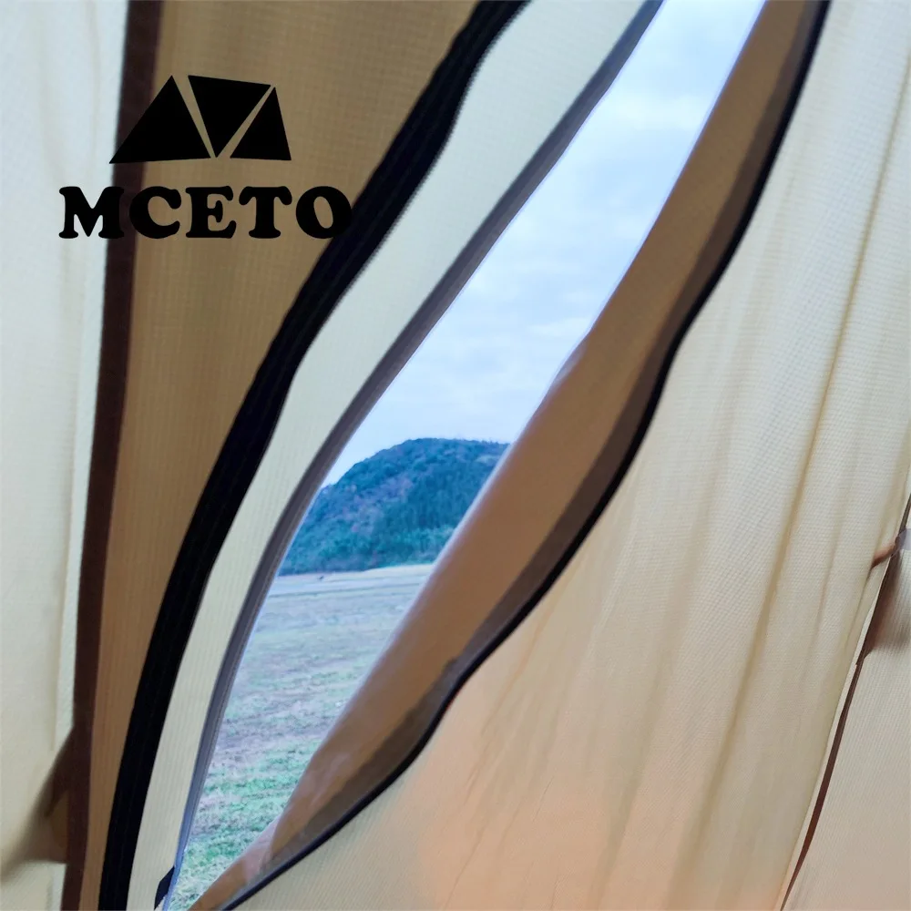In addition to the front and back doors and breathable Windows for ventilation, the tent has a new square smoke vent.this smoke window can be opened and closed, the main function is ventilation and watching. It can be opened when it is hot, especially if you are inside using a stove to cook and boil water for ventilation to prevent overheating, excess moisture or carbon monoxide.also be opened to observe the outside situation, suitable for many bird-watching photography enthusiasts.