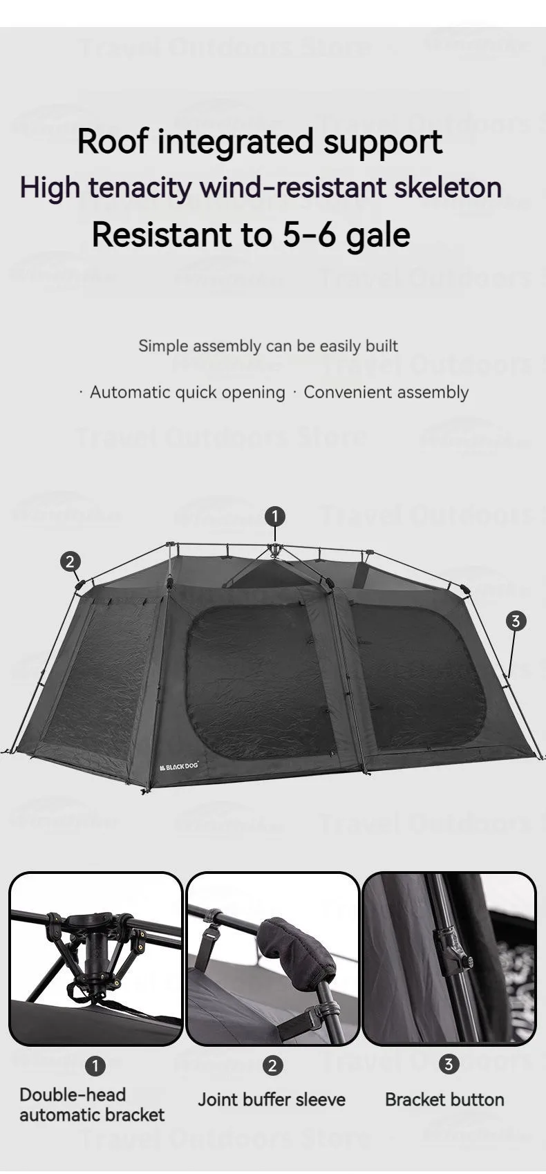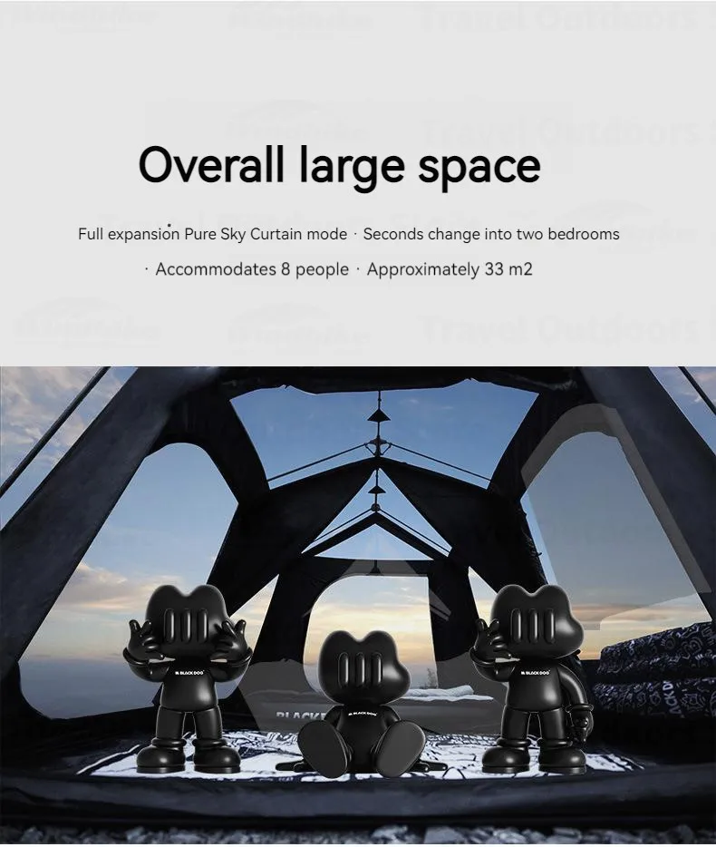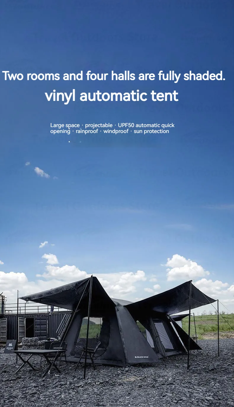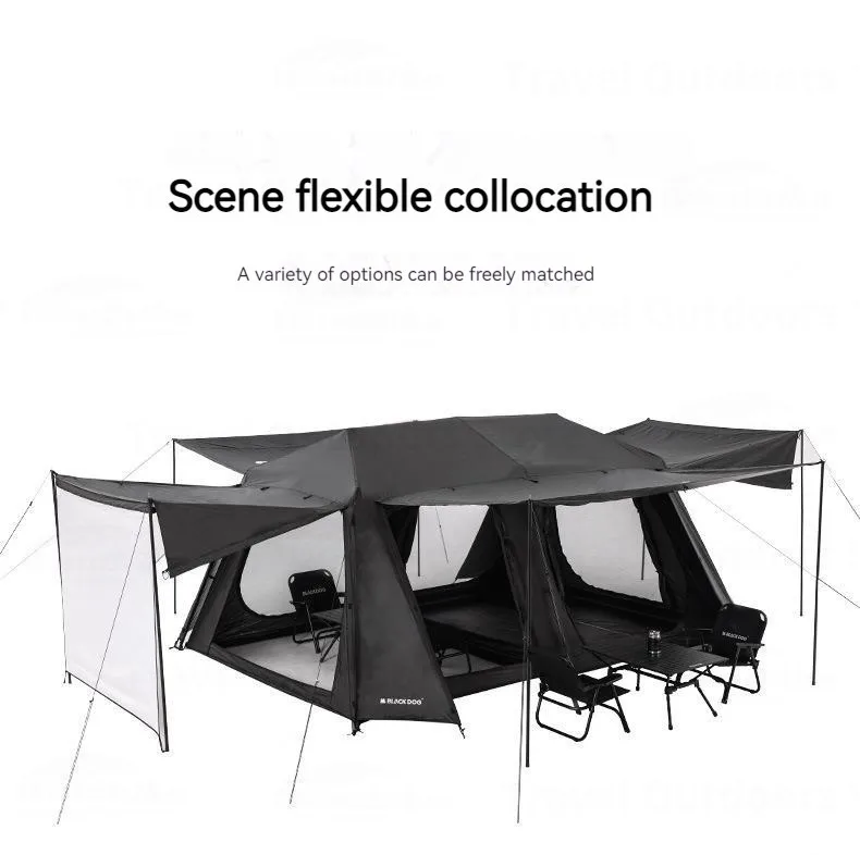 Packing List: 4 poles, storage bag, inner tent, outer tent, 21 nails, 9 ropes, ground cloth, projection screen