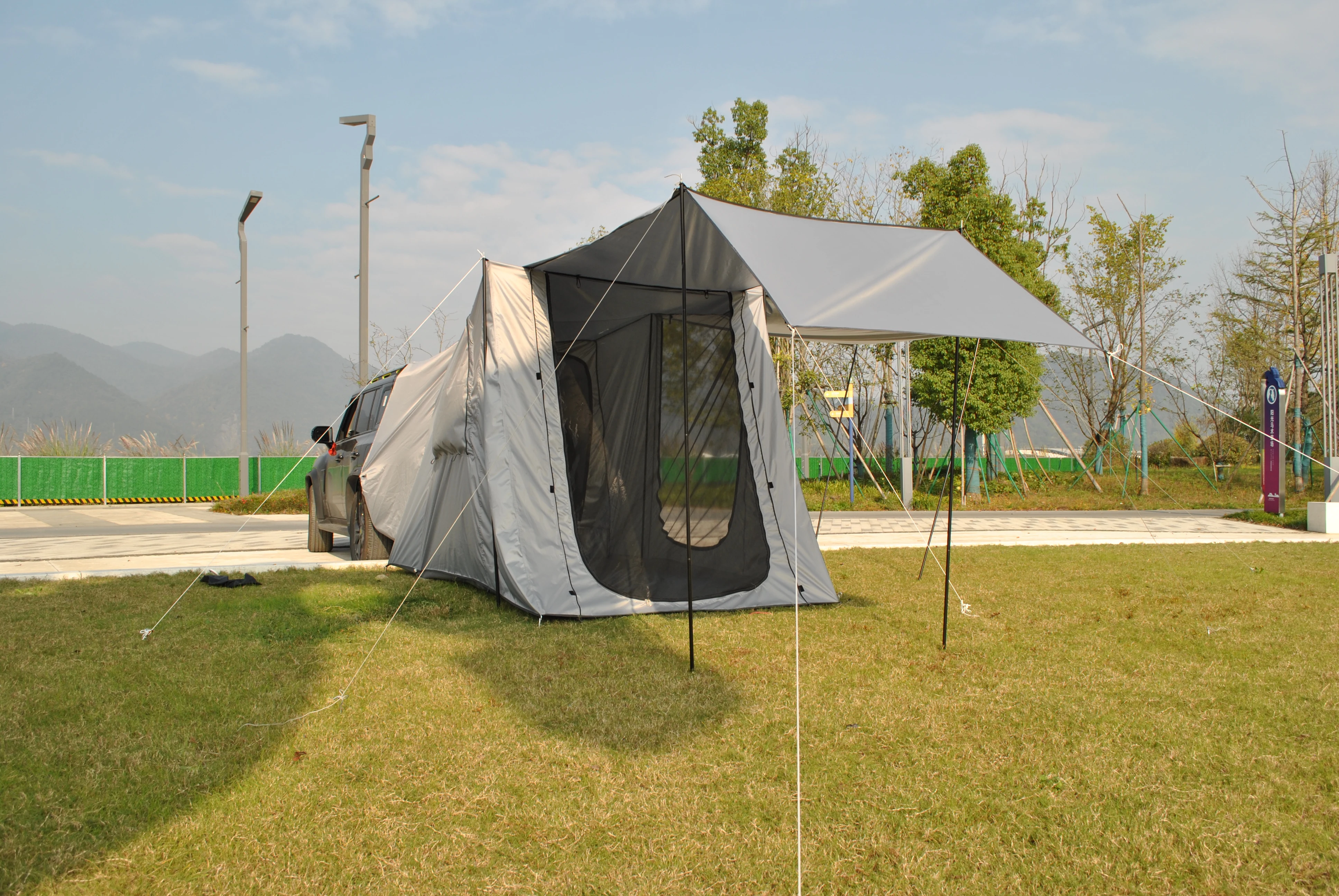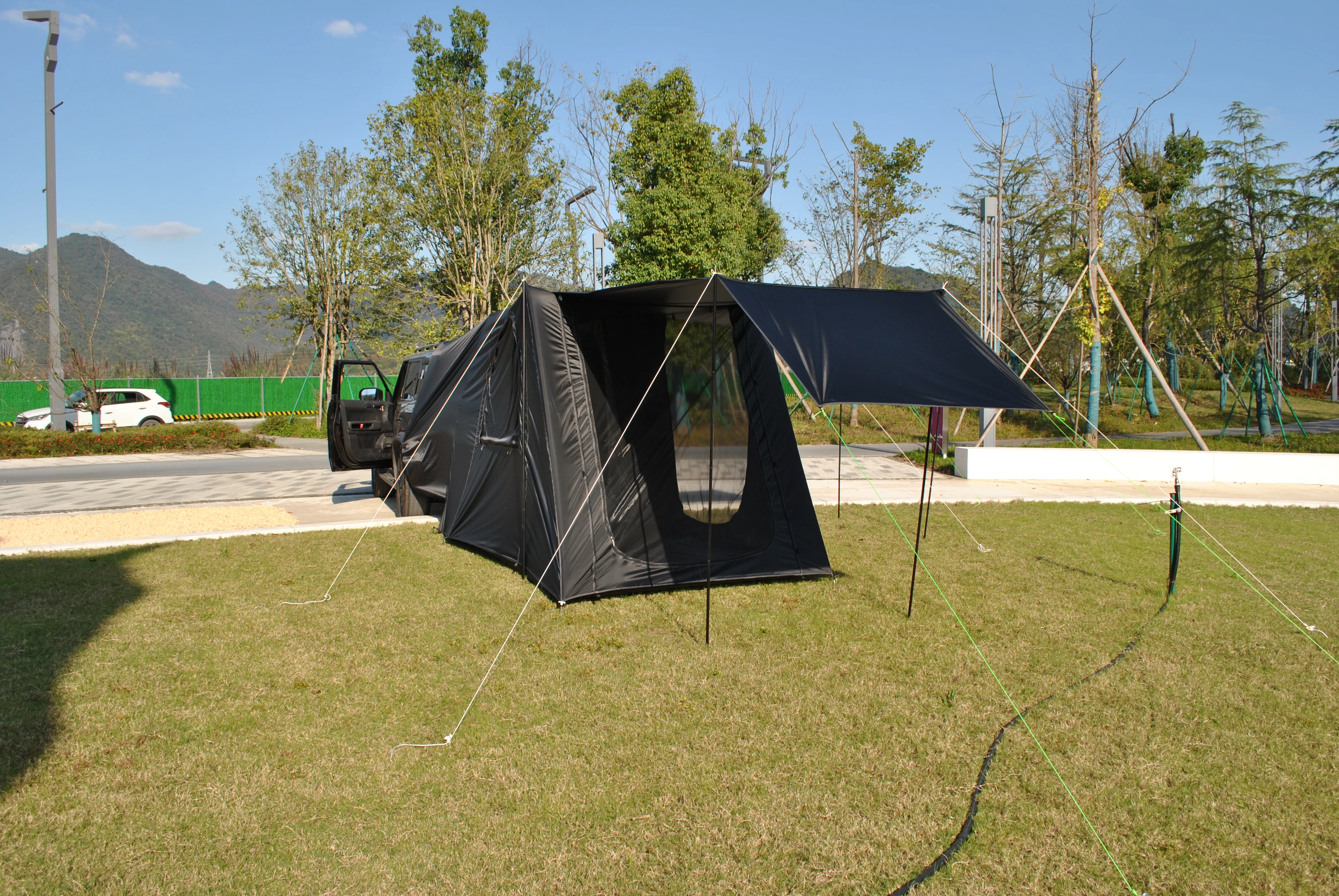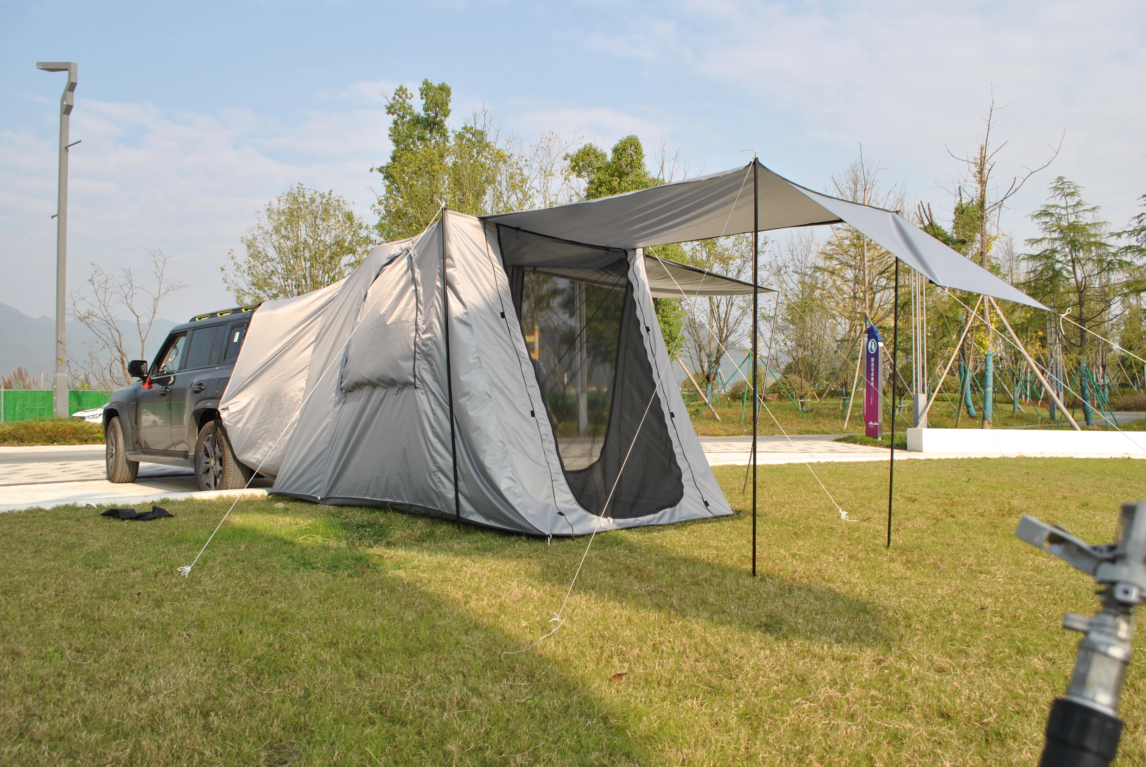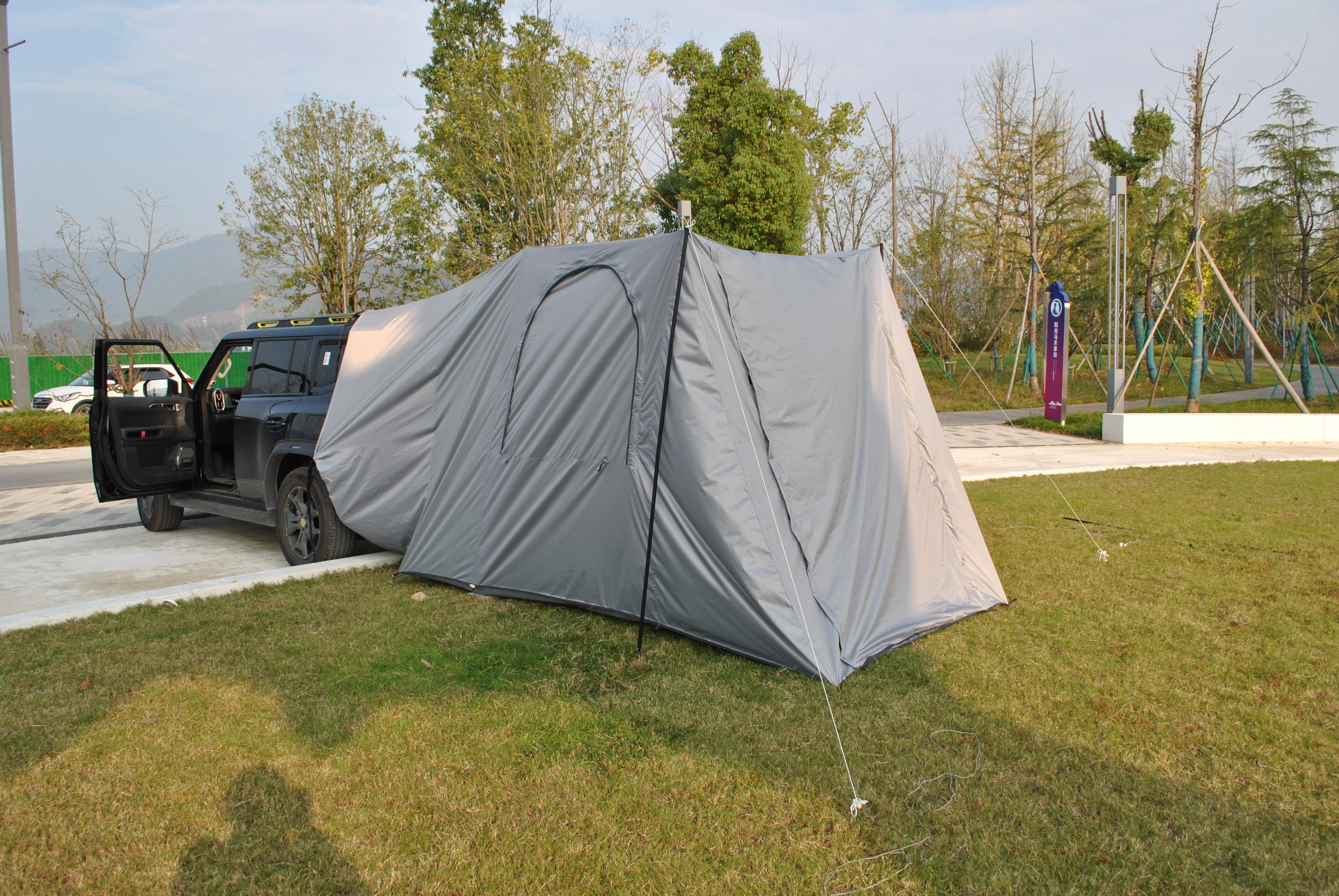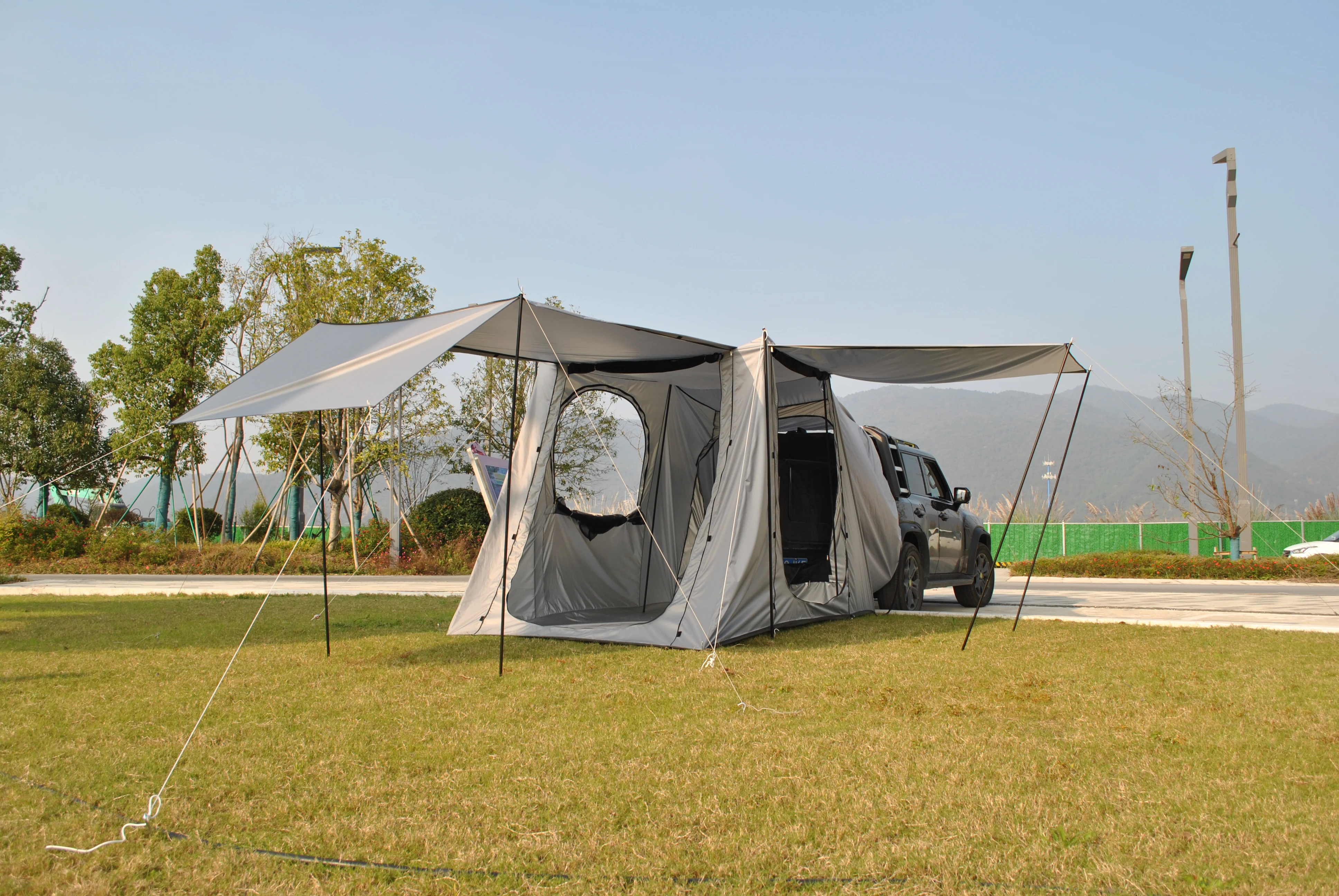 Functional features: This tent is an enlarged version of the rear compartment tent with dimensions of 300cm * 200cm * 210cm when used alone. Suitable size factory 3 meters, model 2 meters, height 2 meters, can accommodate 6 adults, and can also open the front and side doors, a total of 2 doors. At the same time, if it can be directly connected to SUVs and most cars, it can be detached from the rear of the car as a separate family camping tent or as a rear tent. The fabric is coated with silver for sun protection, with a waterproof index of up to PU4000, making it the preferred choice for rain and sun protection self driving tour car rear tents.