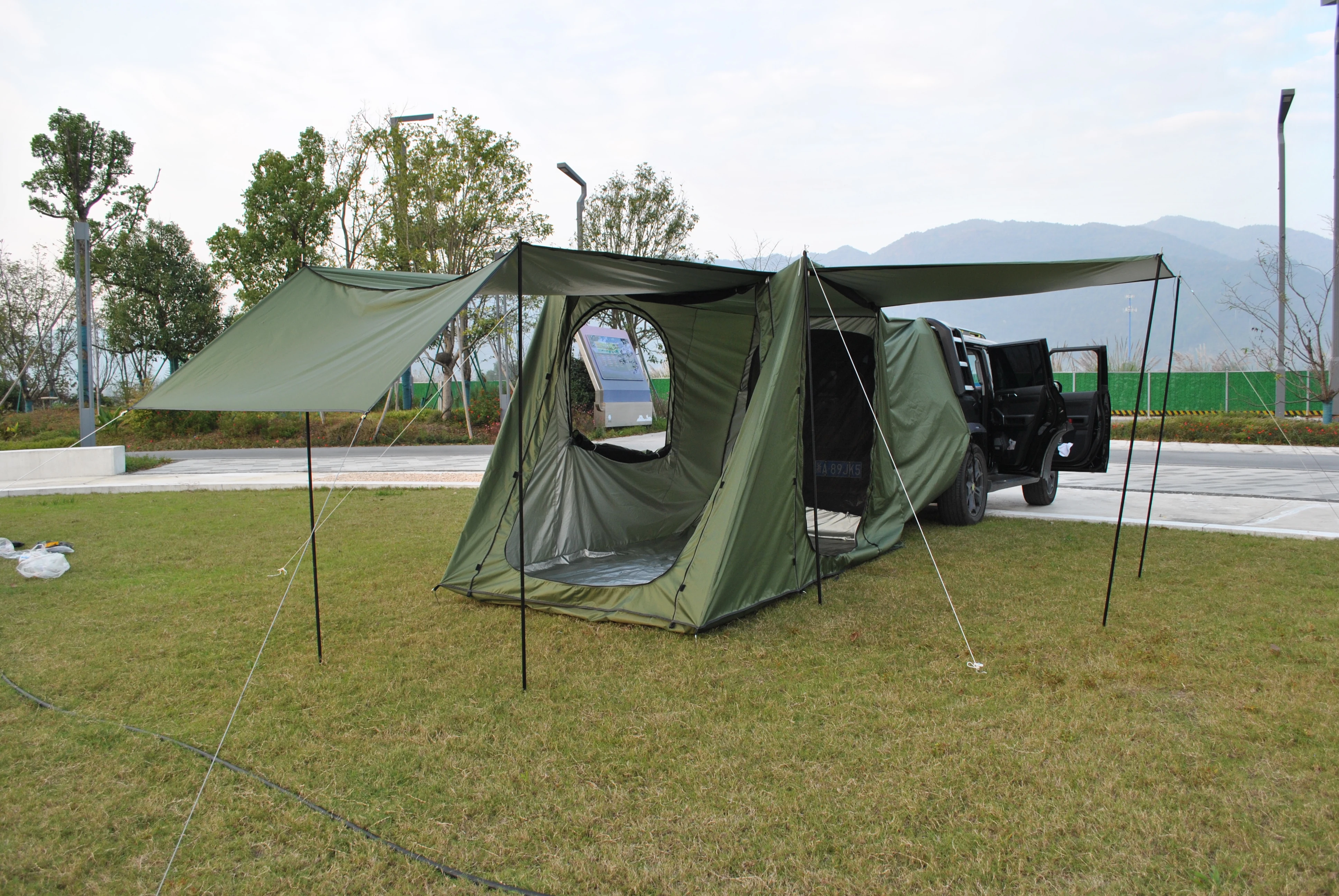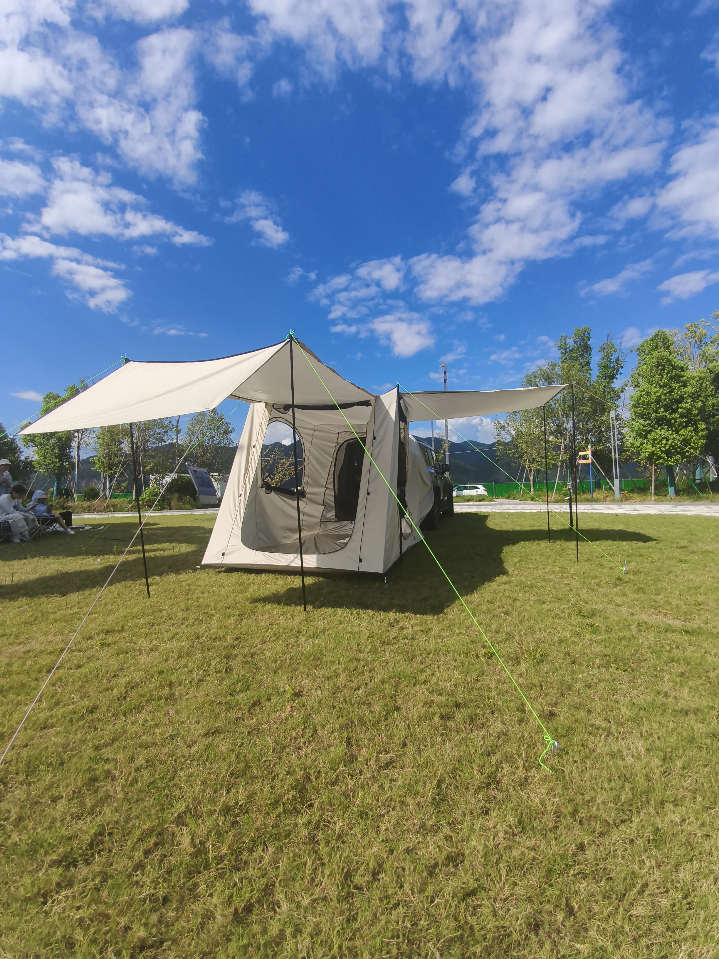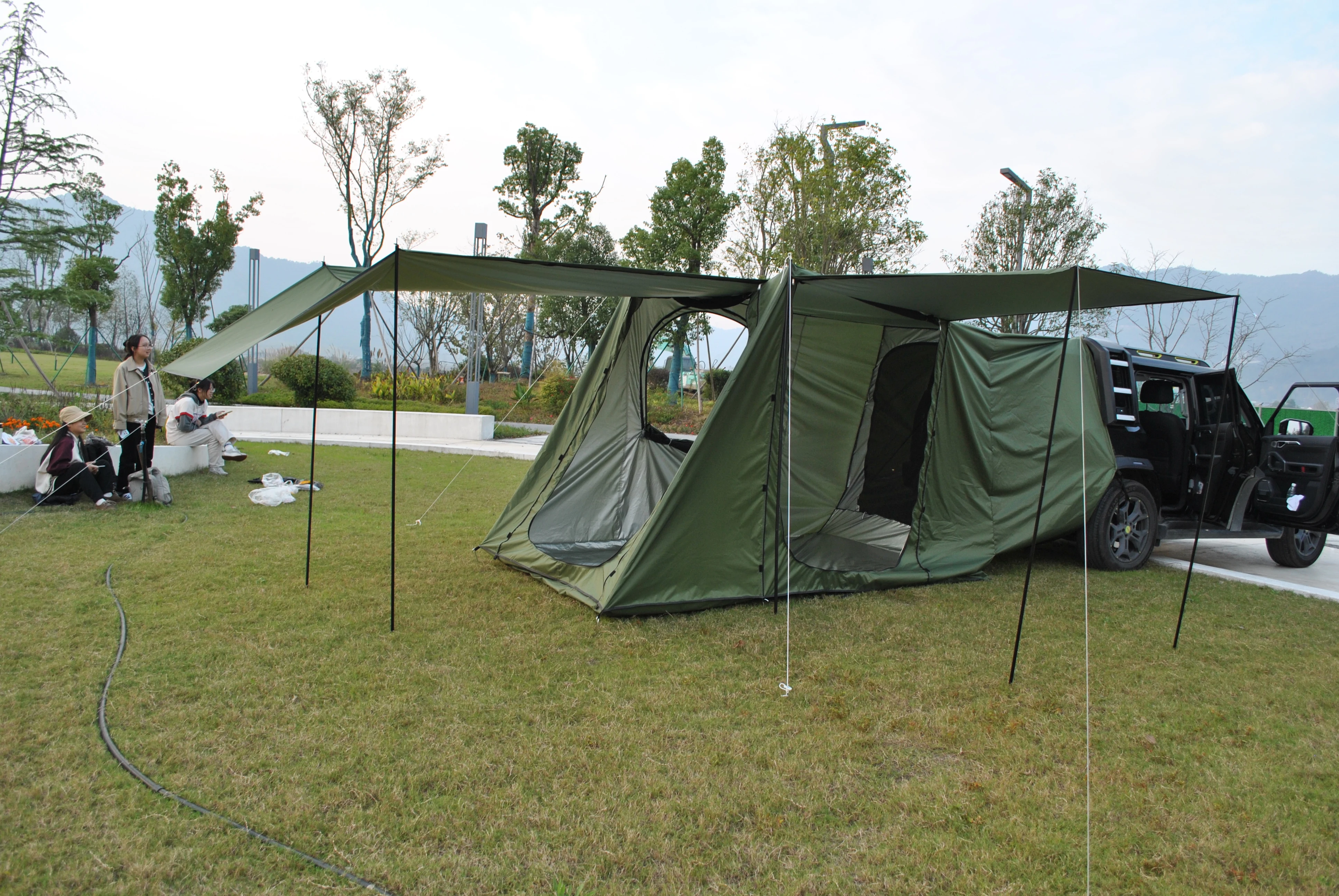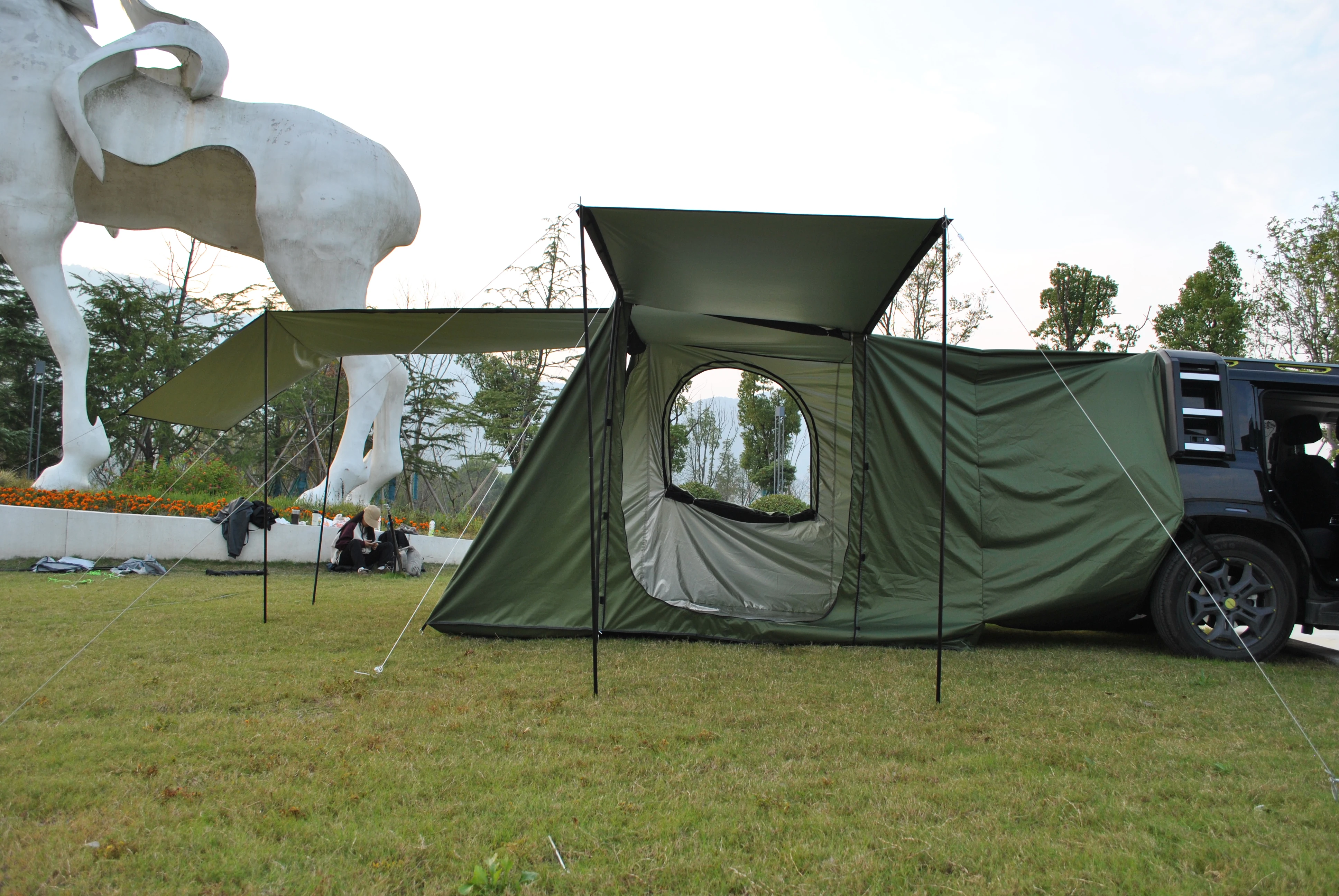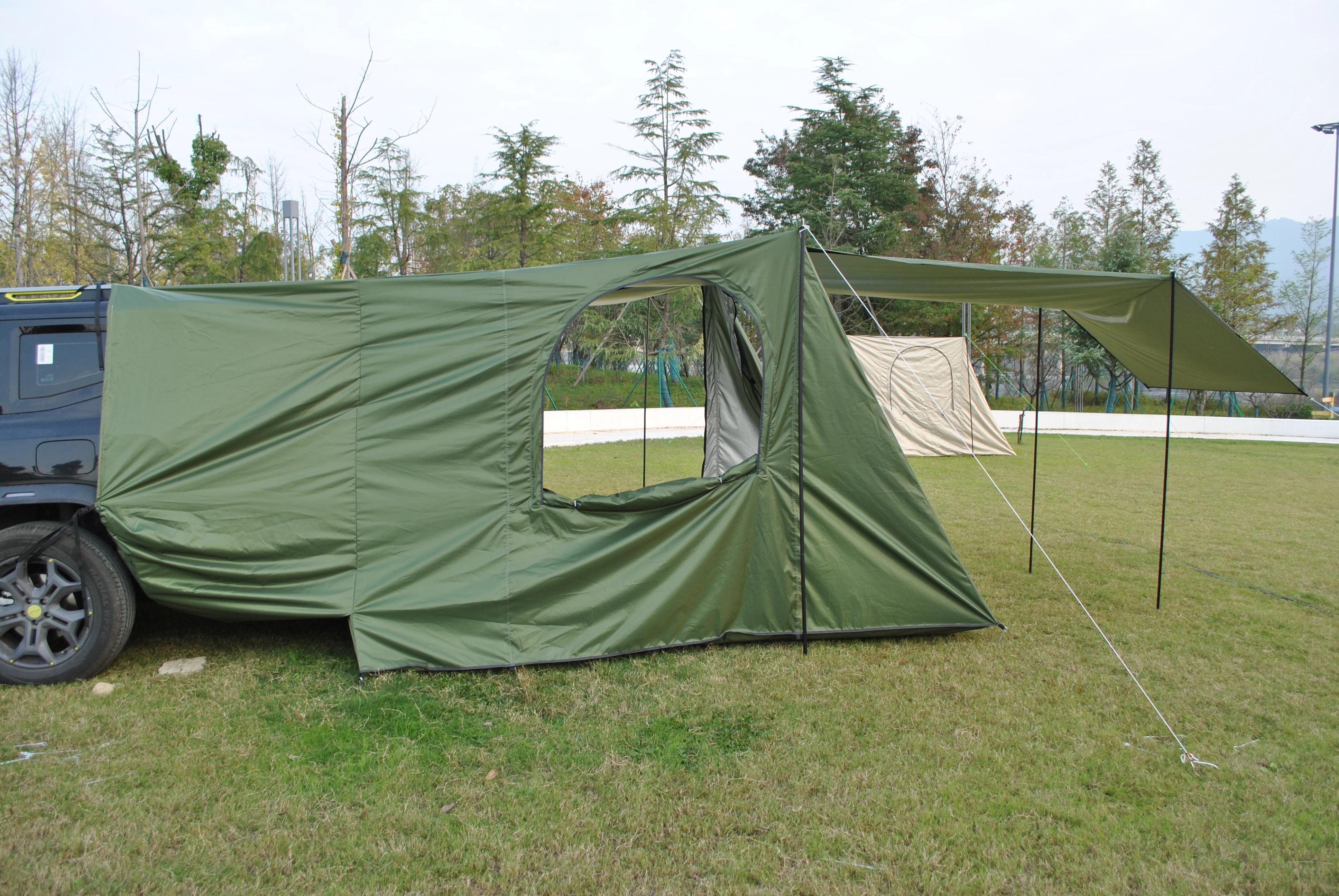 Functional features: This tent is an enlarged version of the rear compartment tent with dimensions of 300cm * 200cm * 210cm when used alone. Suitable size factory 3 meters, model 2 meters, height 2 meters, can accommodate 6 adults, and can also open the front and side doors, a total of 2 doors. At the same time, if it can be directly connected to SUVs and most cars, it can be detached from the rear of the car as a separate family camping tent or as a rear tent. The fabric is coated with silver for sun protection, with a waterproof index of up to PU4000, making it the preferred choice for rain and sun protection self driving tour car rear tents.